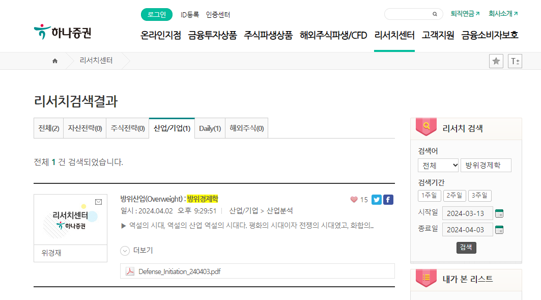 하나증권 HOME > 리서치센터 > 산업/기업 > 산업분석