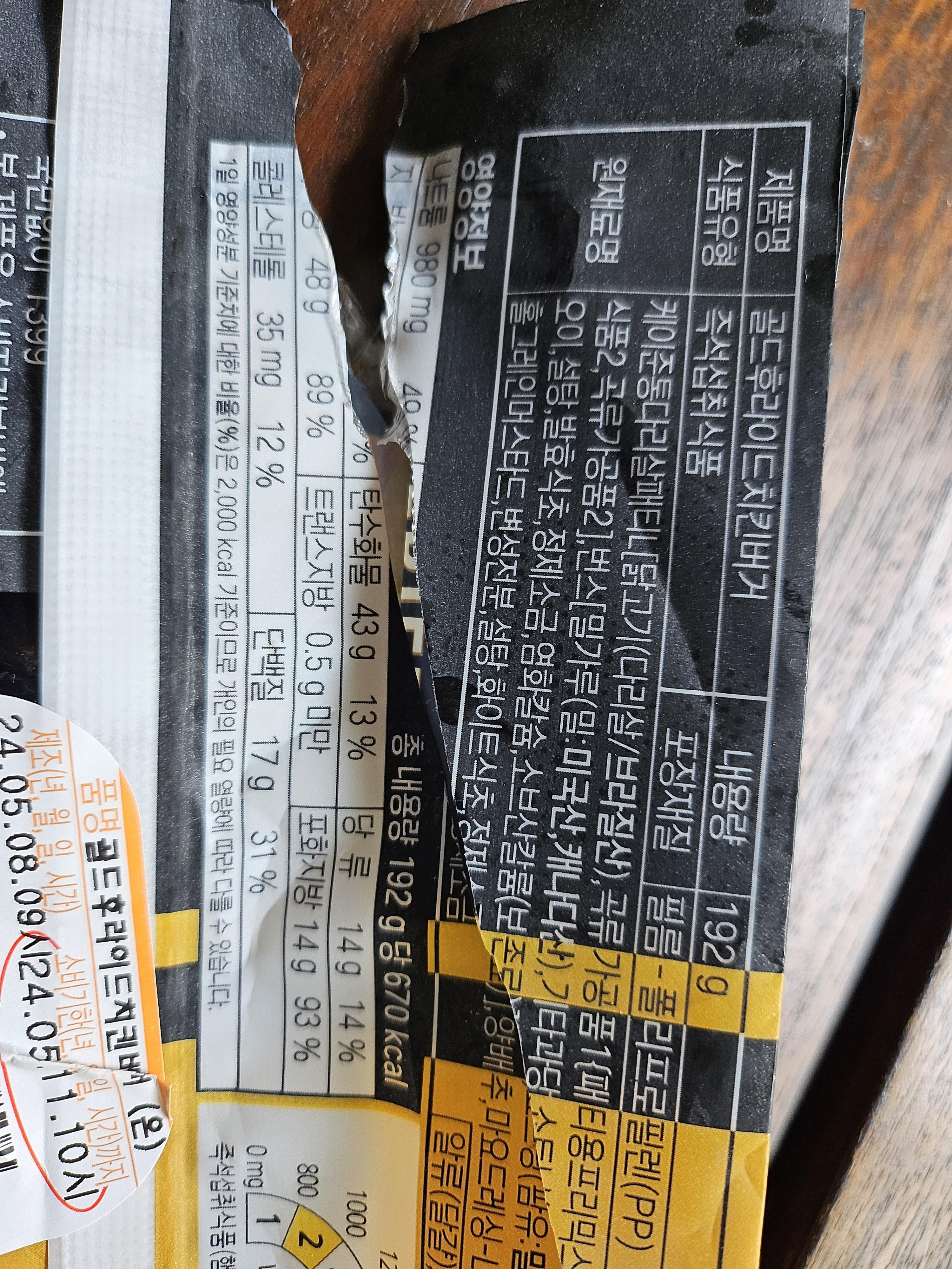 세븐일레븐 구입한 골드 후라이드 치킨버그입니다.