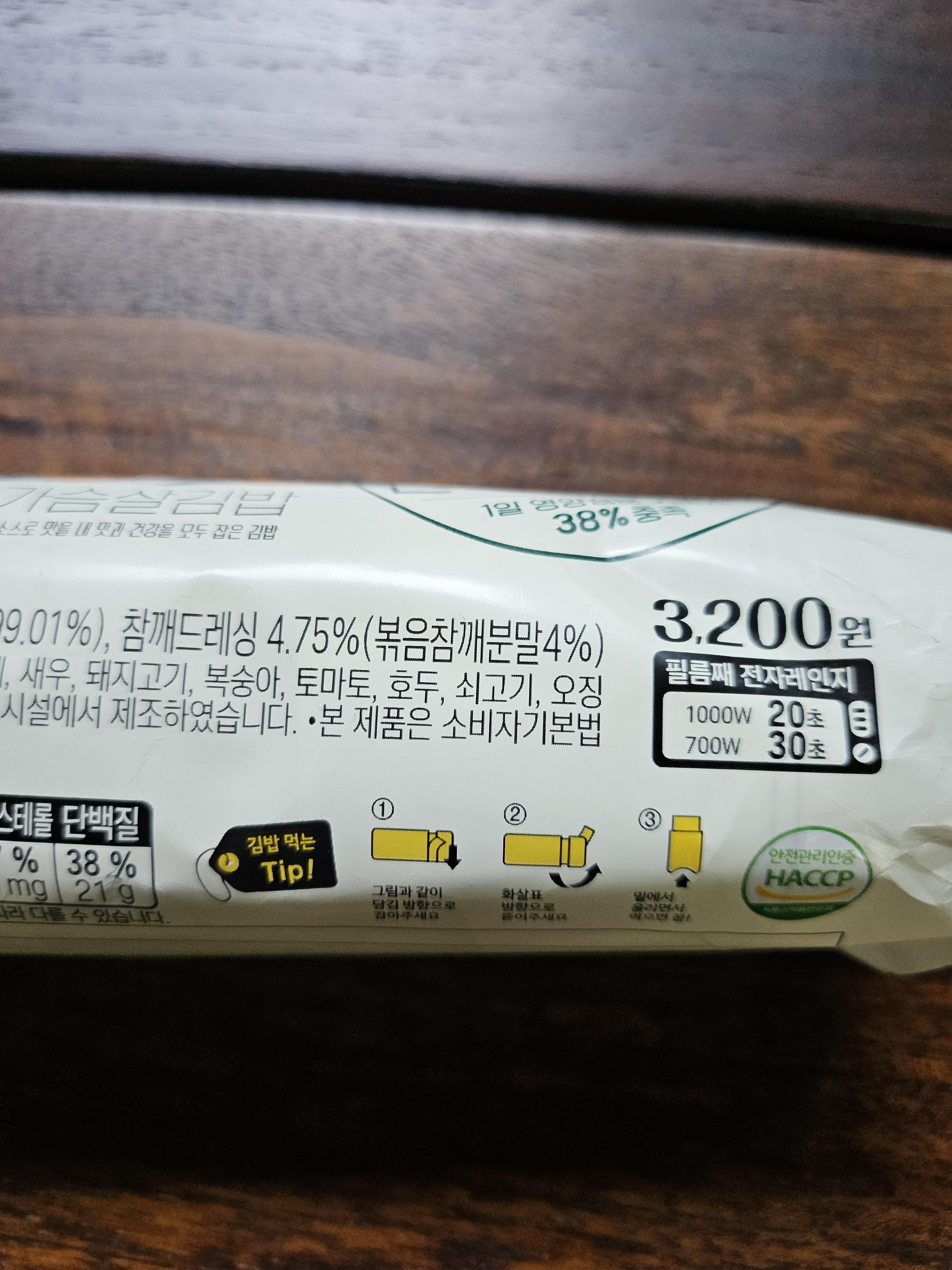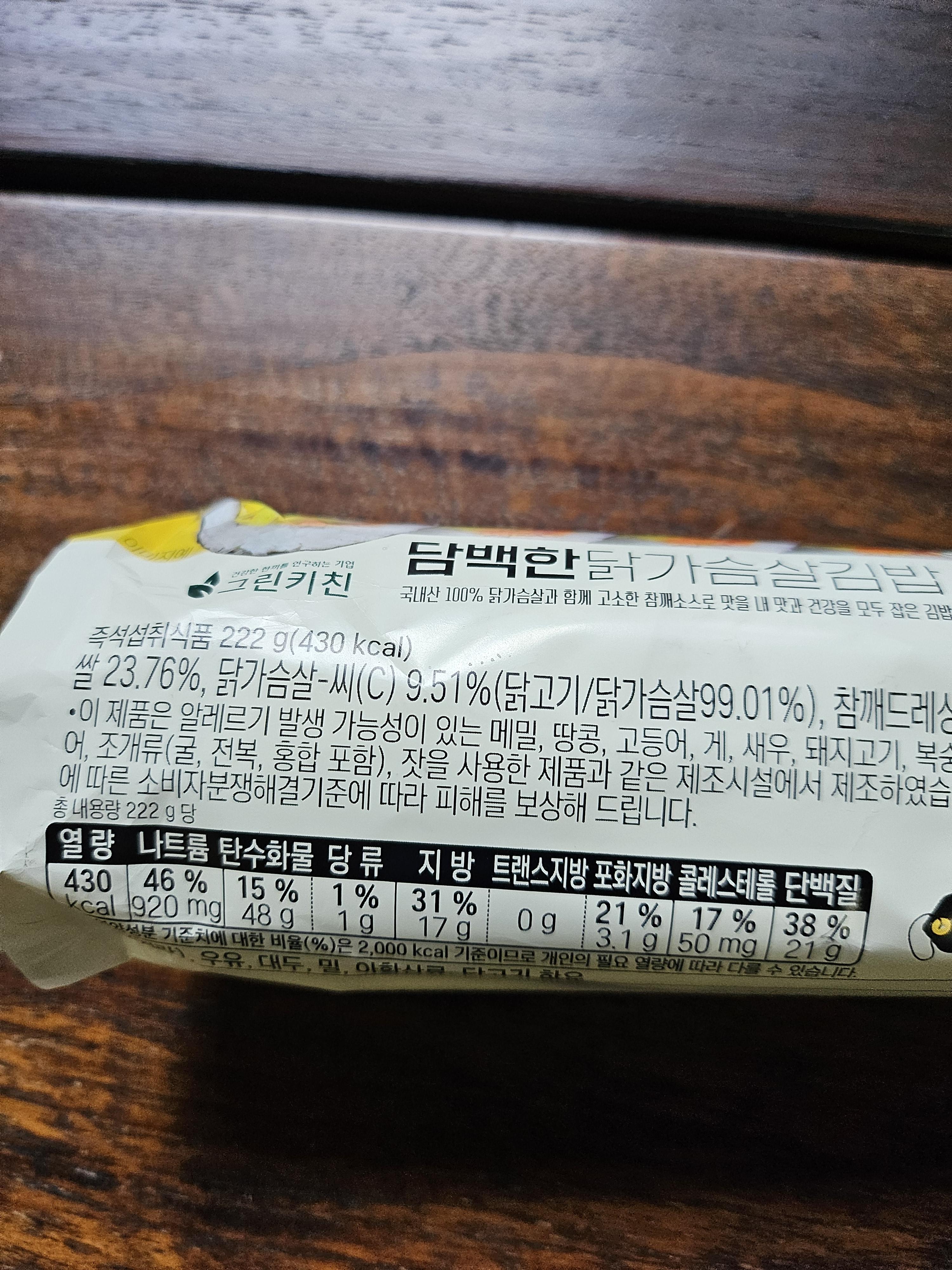 세븐일레븐 구입한 '담백한 닭가슴살 김밥'입니다.