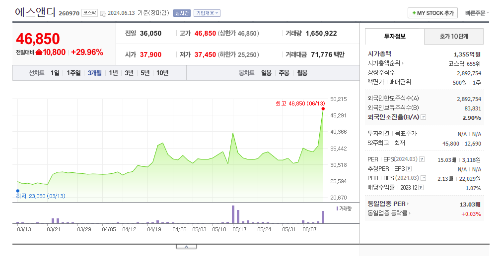 에스앤디 260970 KOSDAQ