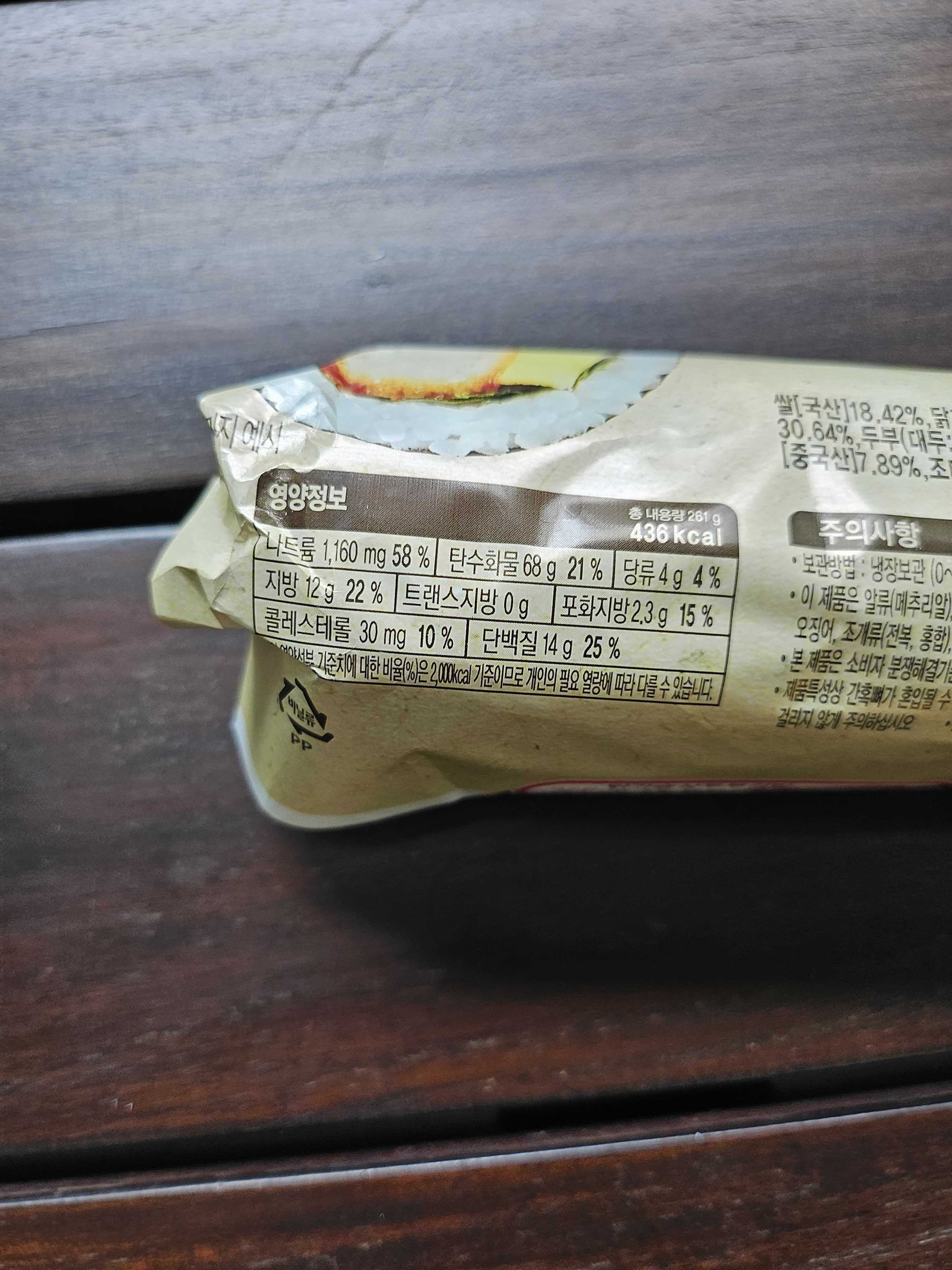 CU 편의점에서 구입한 닭가슴살 두부 김밥입니다.