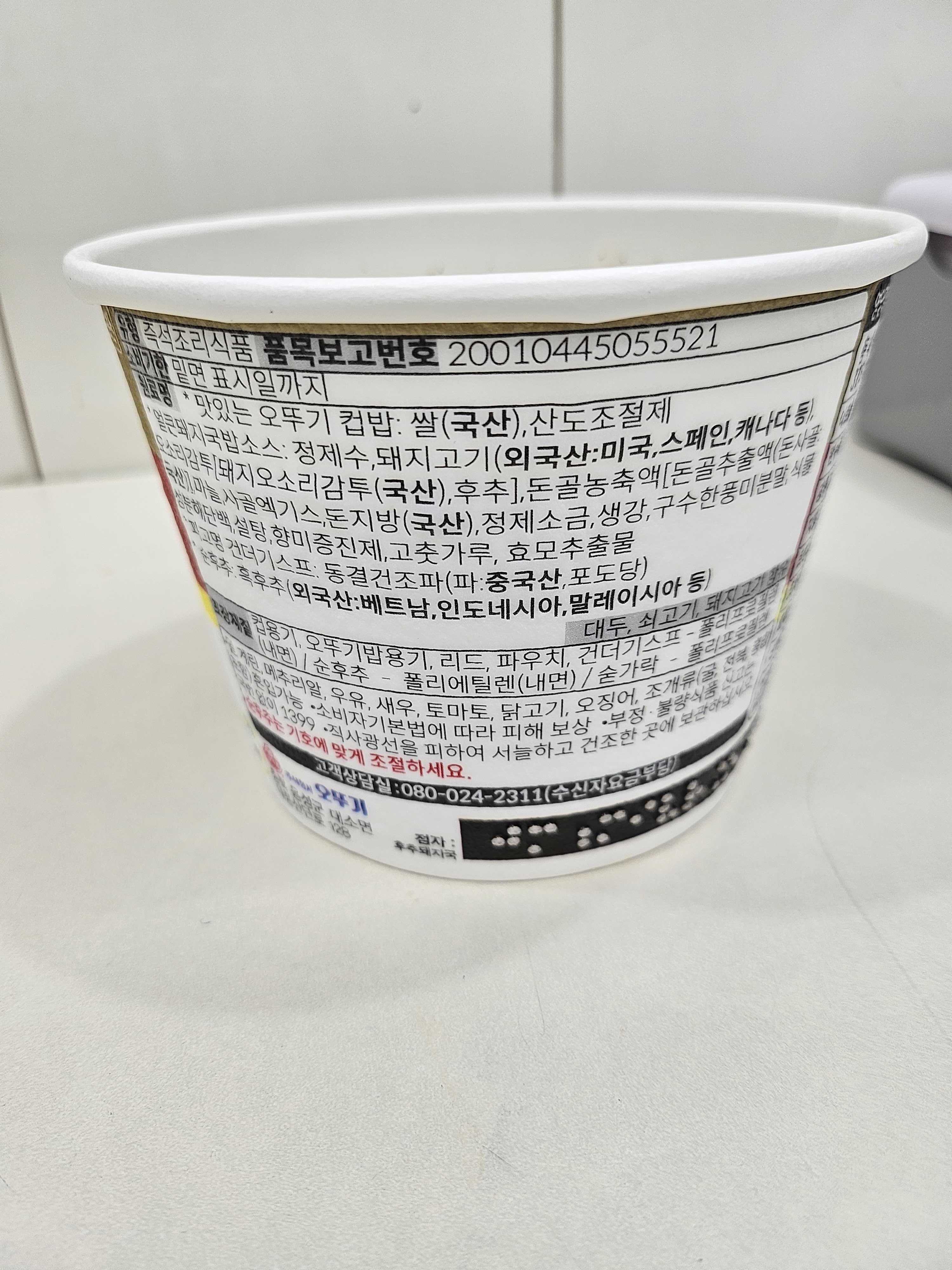 편의점에서 "오뚜기 순후추 돼지국밥"을 구입해서 먹었습니다.