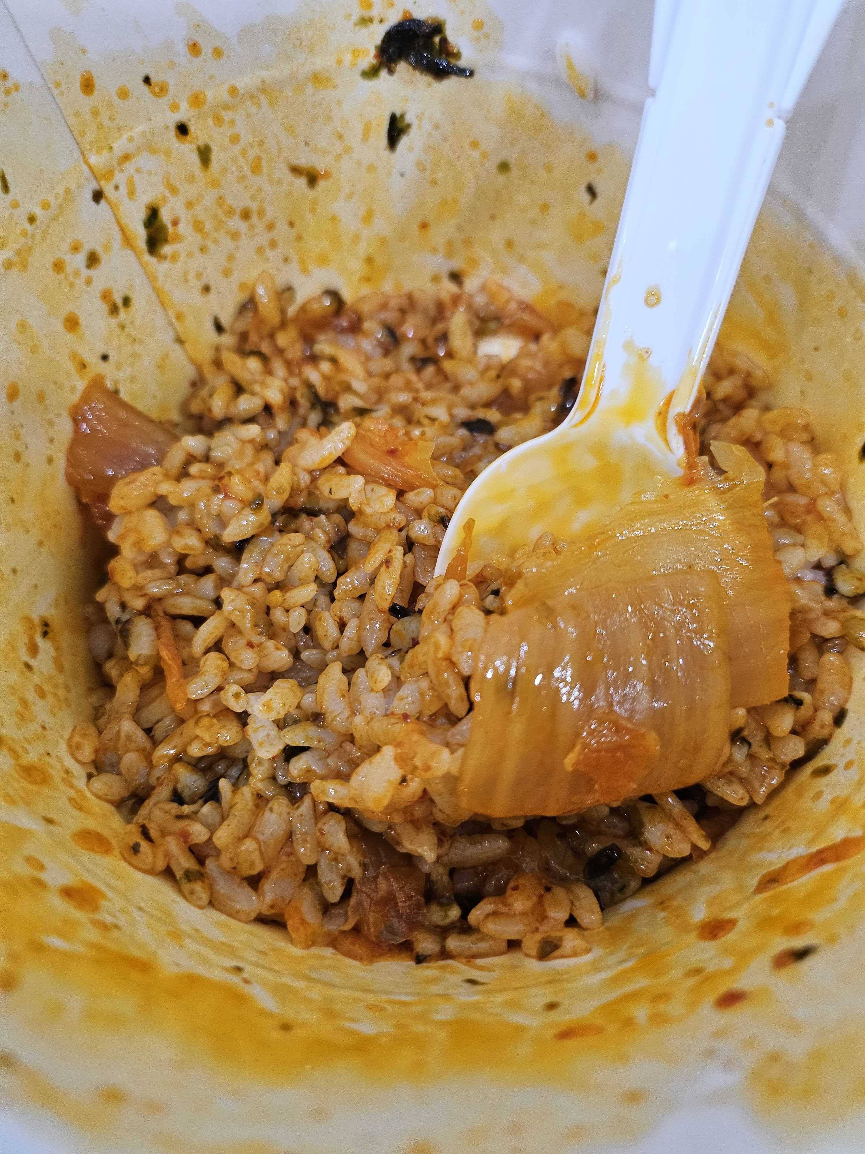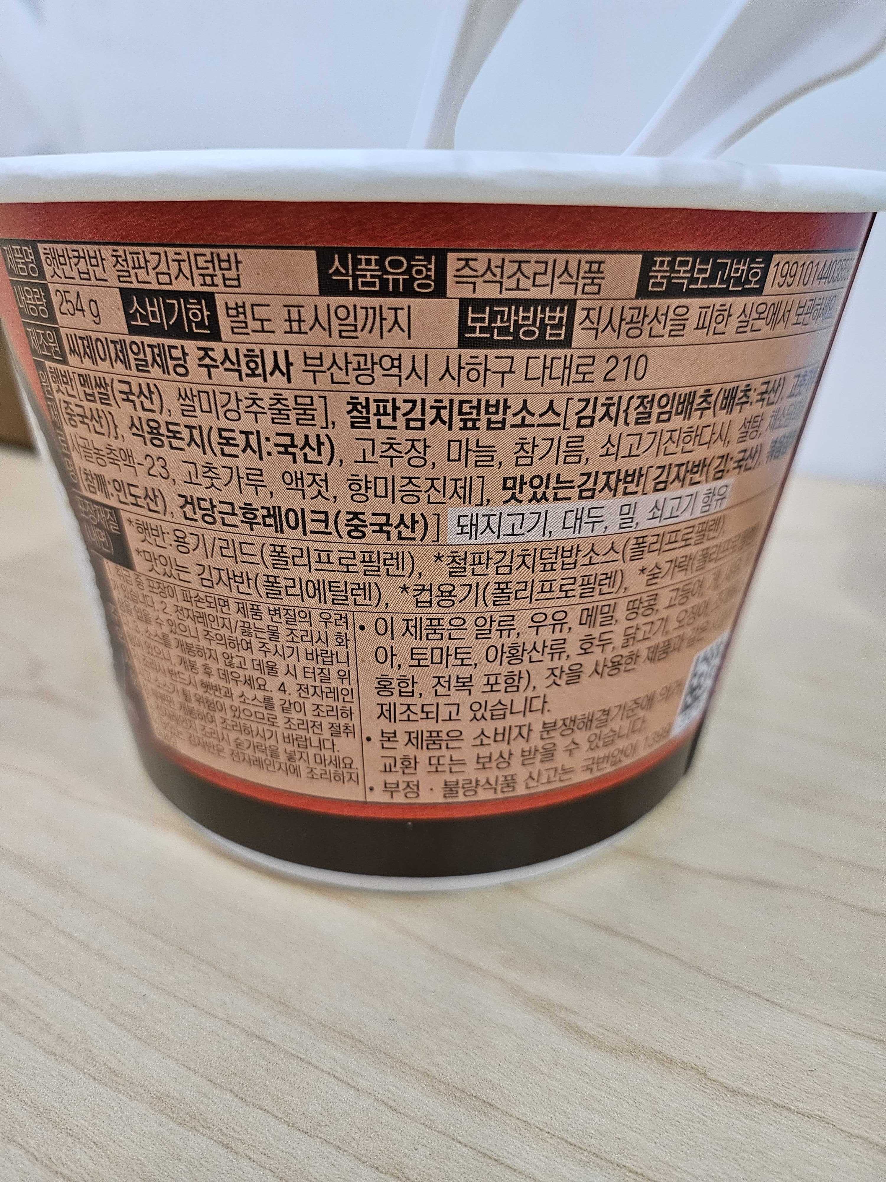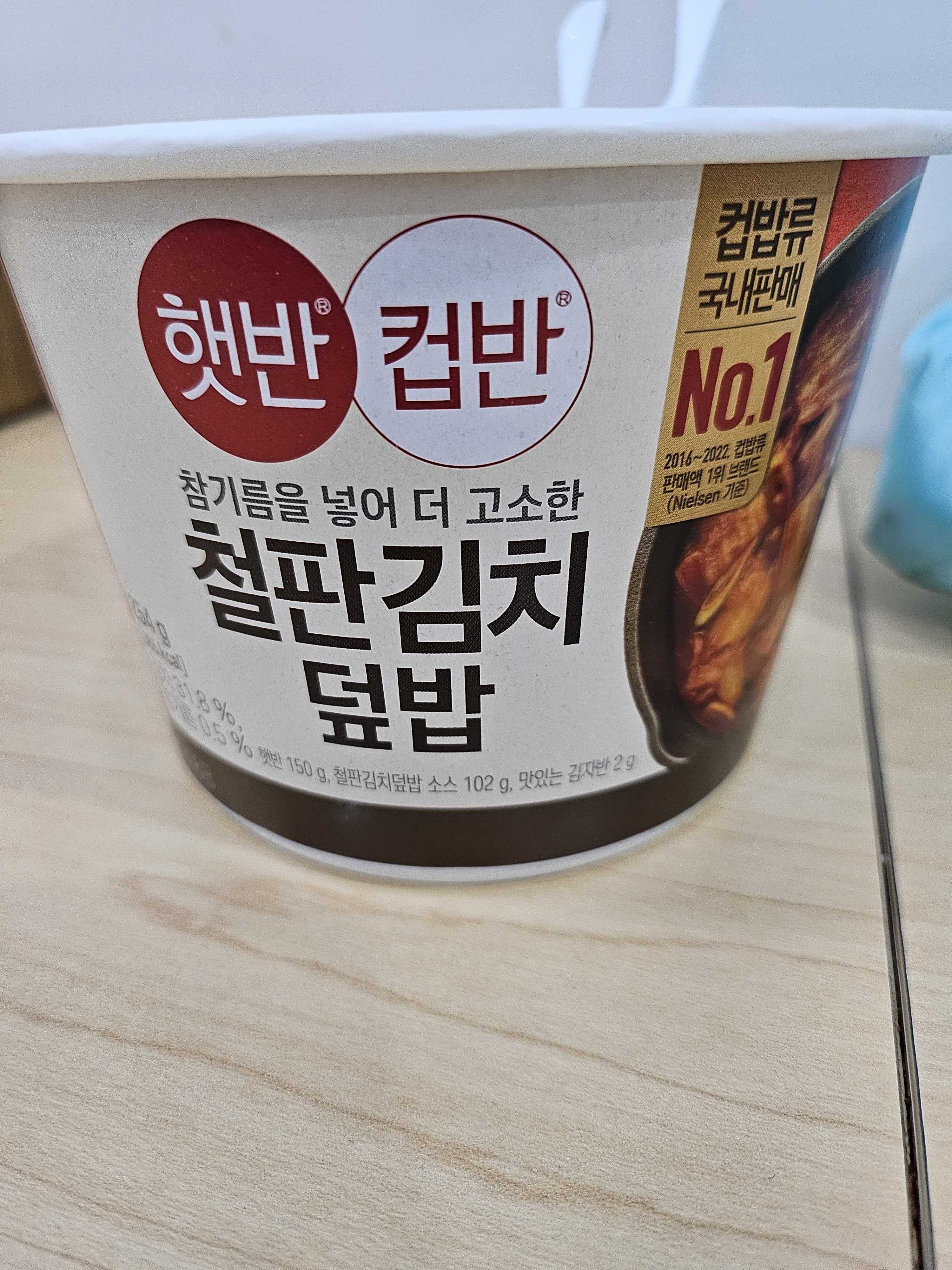 편의점에서 구입해서 먹은 "햇반 컵반 철판 김치 덮밥"입니다.